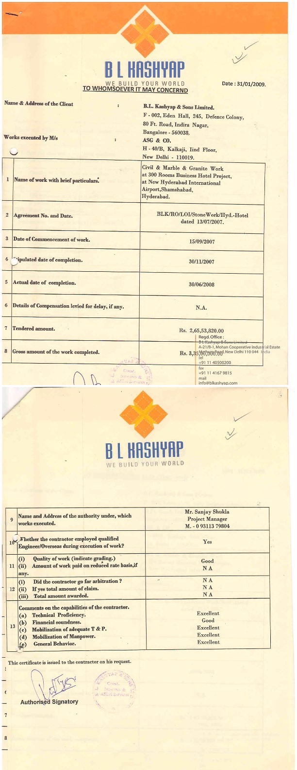 ASG & Co. Completion Certificates