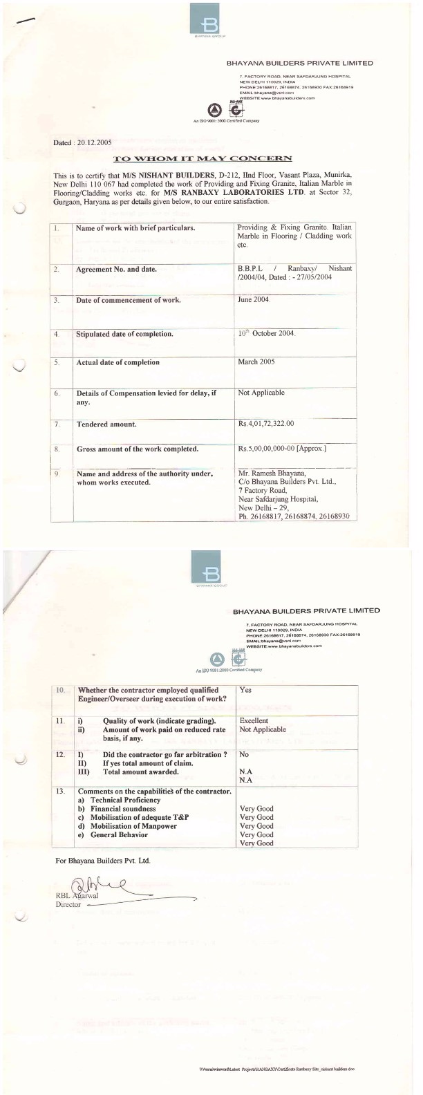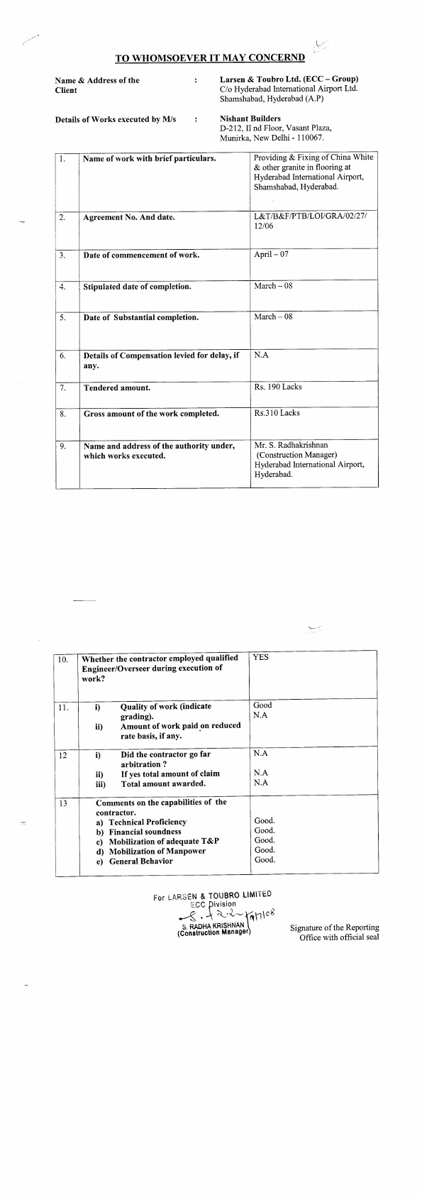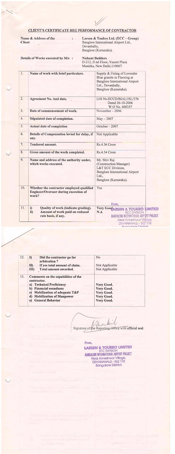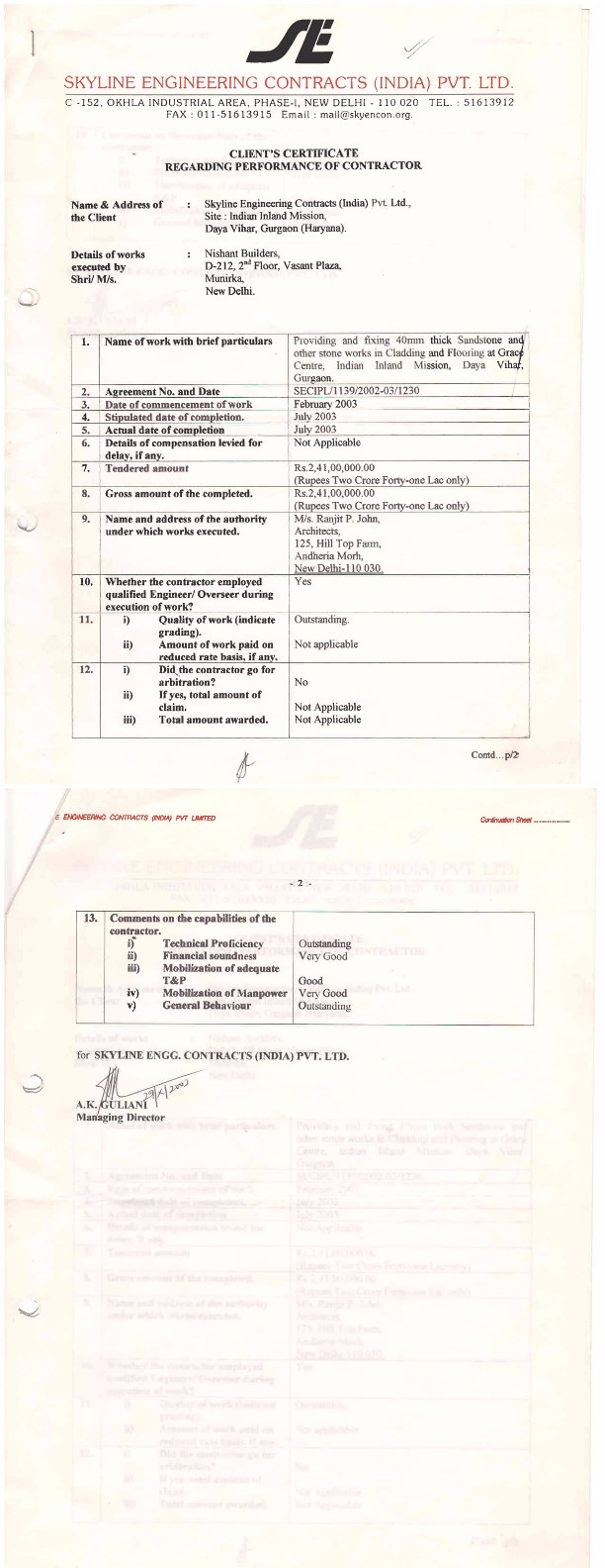 Nishant Builders Completion Certificate