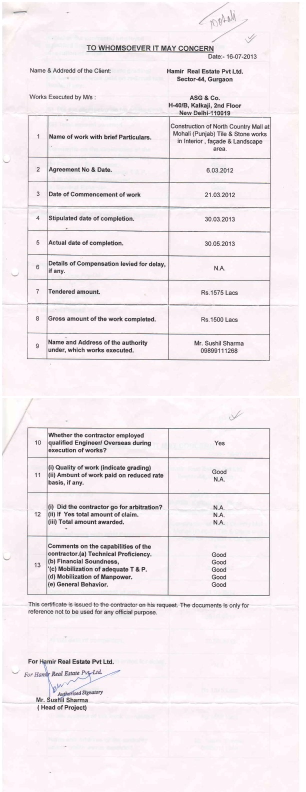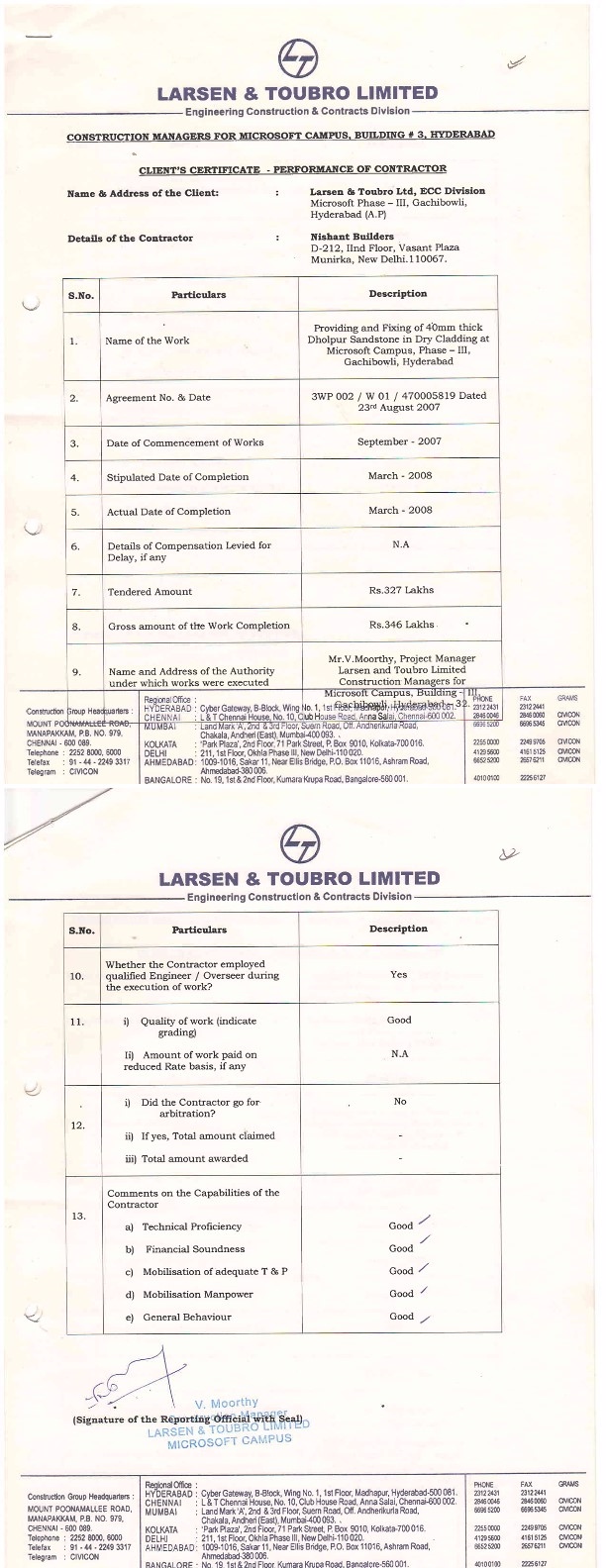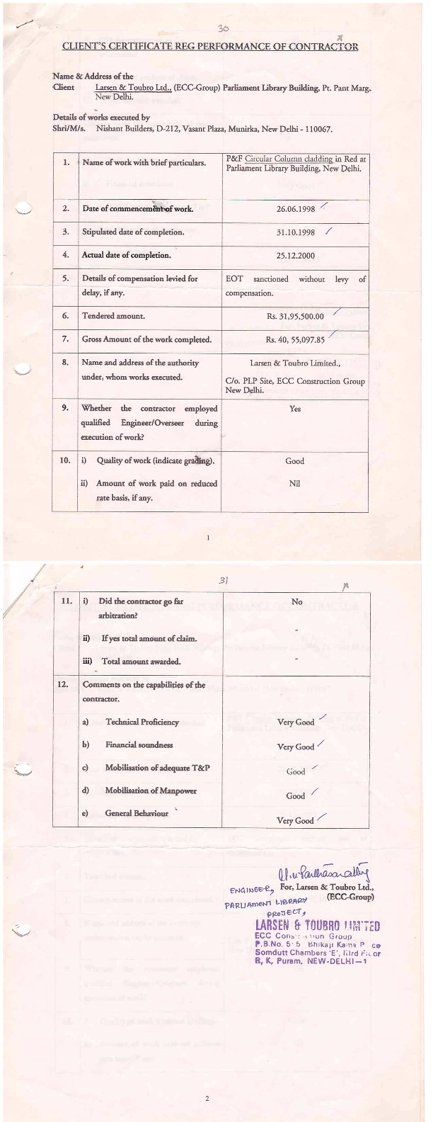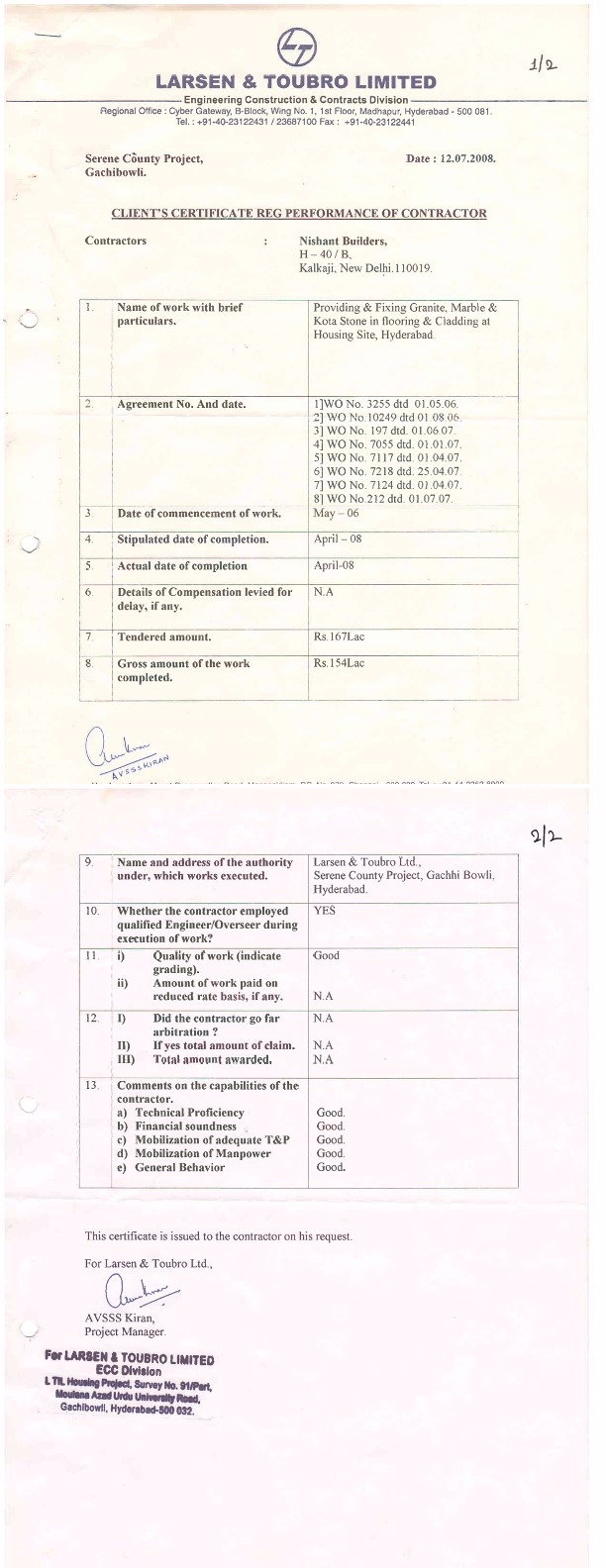 Nishant Builders Completion Certificate
