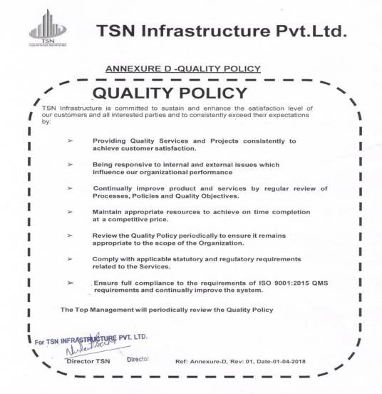 To check quality of material coming to site one person will be deputed to check the raw material whatever it is the mentioned in the tender & the quality required. We will be having separate quality checking project manager at site